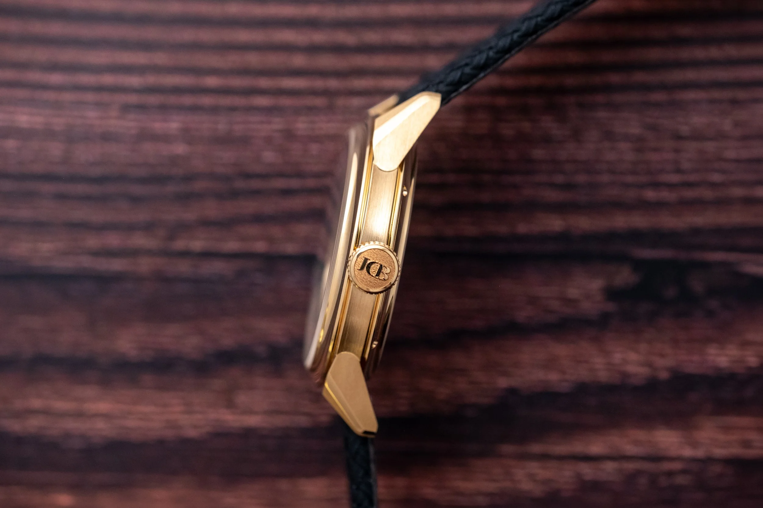 Flip either watch over and the focus shifts immediately to the movement. Both are powered by the Caliber JCB.003-C, an automatic micro-rotor caliber developed with Dubois Dépraz specifically for the Automatique. It beats at 3.5 Hz, offers a 65-hour power reserve, and features a zero-reset seconds function, snapping the seconds hand back to zero when you pull the crown for precise setting.