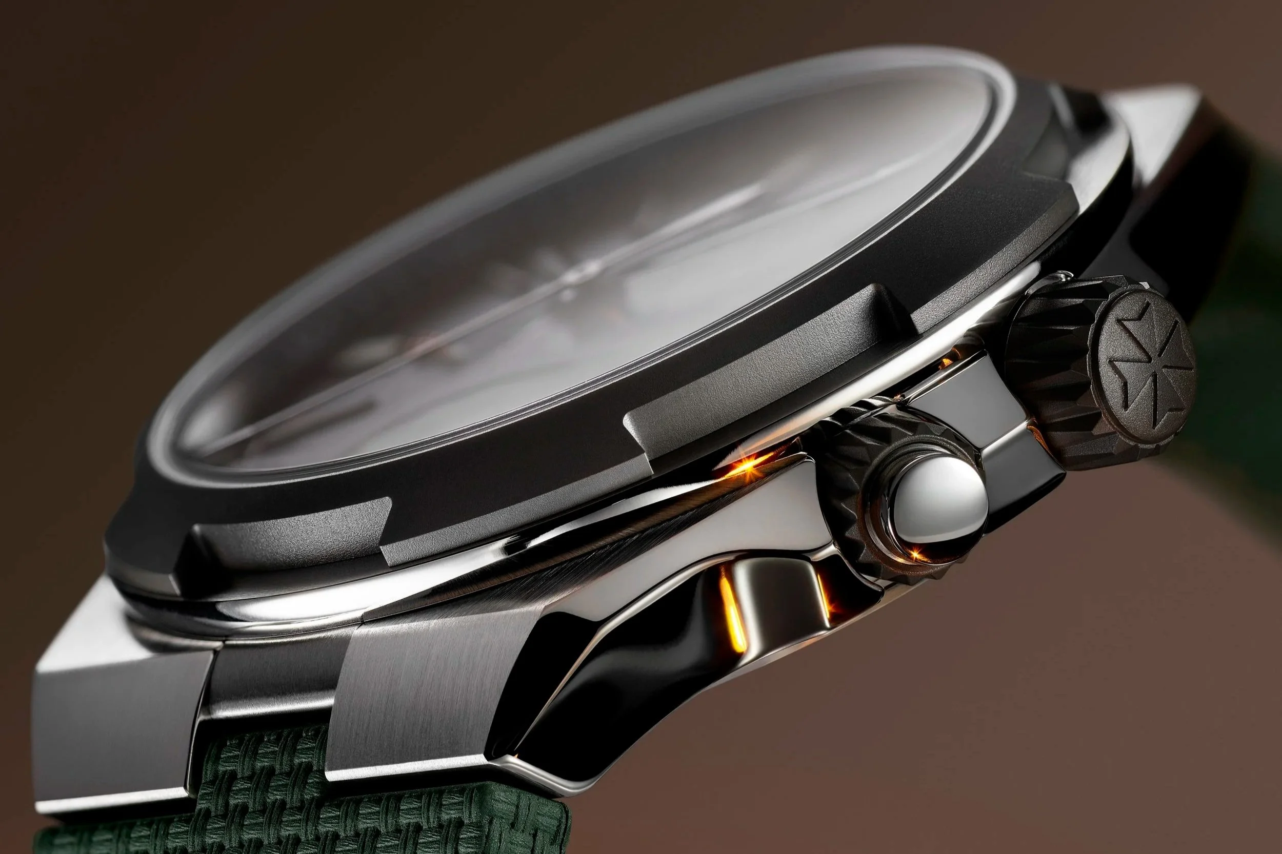 There is a reason that Vacheron is widely considered to be top of the game: they don’t do things by halves. They have opted for a non-uniform finish on the watch, remidning us that function can be aesthetic. The bezel, crown, and pusher ring are given a darker anthracite treatment, which creates just enough contrast to define the shape without turning it into a two-tone piece. It also emphasises the familiar and now iconic Overseas bezel geometry, with its Maltese cross-inspired notches.