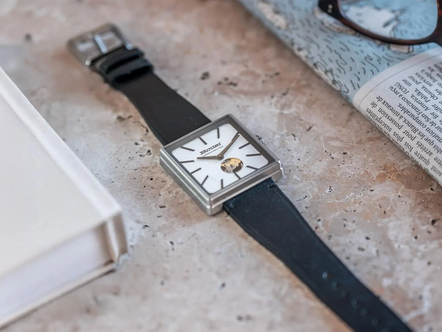 Much like Mondaine, Bodet are a brand that are intrinsically linked to the modern railroads of Europe. If any of you have taken a train in France and looked up to catch a glimpse of the time, it was certainly a Bodet Profil TGV that you were looking at: another instantly recognisable design. Whilst it has been made into a watch format, they are incredibly hard to find, but, Bodet has released a some slightly different designs that still have that railroad feel about them: the B480. This square piece reincarnates the unmissably and crystal clear time telling. The case is probably my favourite feature. AT 40x38mm it is almost perfectly square and has no lugs, giving it great legibility without increasing the real size. The bracelet seamlessly integrates into the case, tying it together nicely. The aperture in the dial shows the Miyota calibre’s beating heart, reminding us of Bodet’s heritage as a watchmaker. Limited to just 150 pieces, you can pick up this watch at retail for €860 (approximately $1,000 USD at the time of writing).