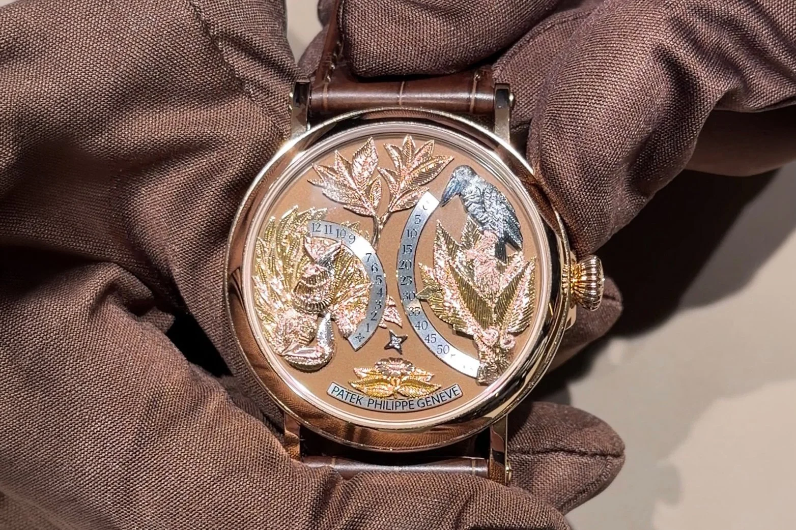 Among the most poetic pieces unveiled by Patek Philippe this year is the Patek Philippe Ref. 5249R-001 “The Crow and the Fox”, the maison’s first automaton wristwatch in its modern history. Inspired by a remarkable 1958 pocket watch now housed in the Patek Philippe Museum, the piece transforms Jean de La Fontaine’s famous fable into a miniature mechanical theater on the wrist.