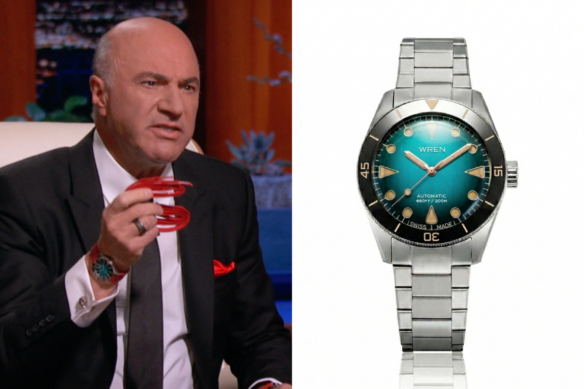 That mindset actually shows up in Kevin’s real-world watch choices too. While he’s known for wearing some very high-end pieces on Shark Tank, he occasionally throws something unexpected into the mix. On the March 4, 2026 episode, that watch was the Wren Diver 38 Aqua.